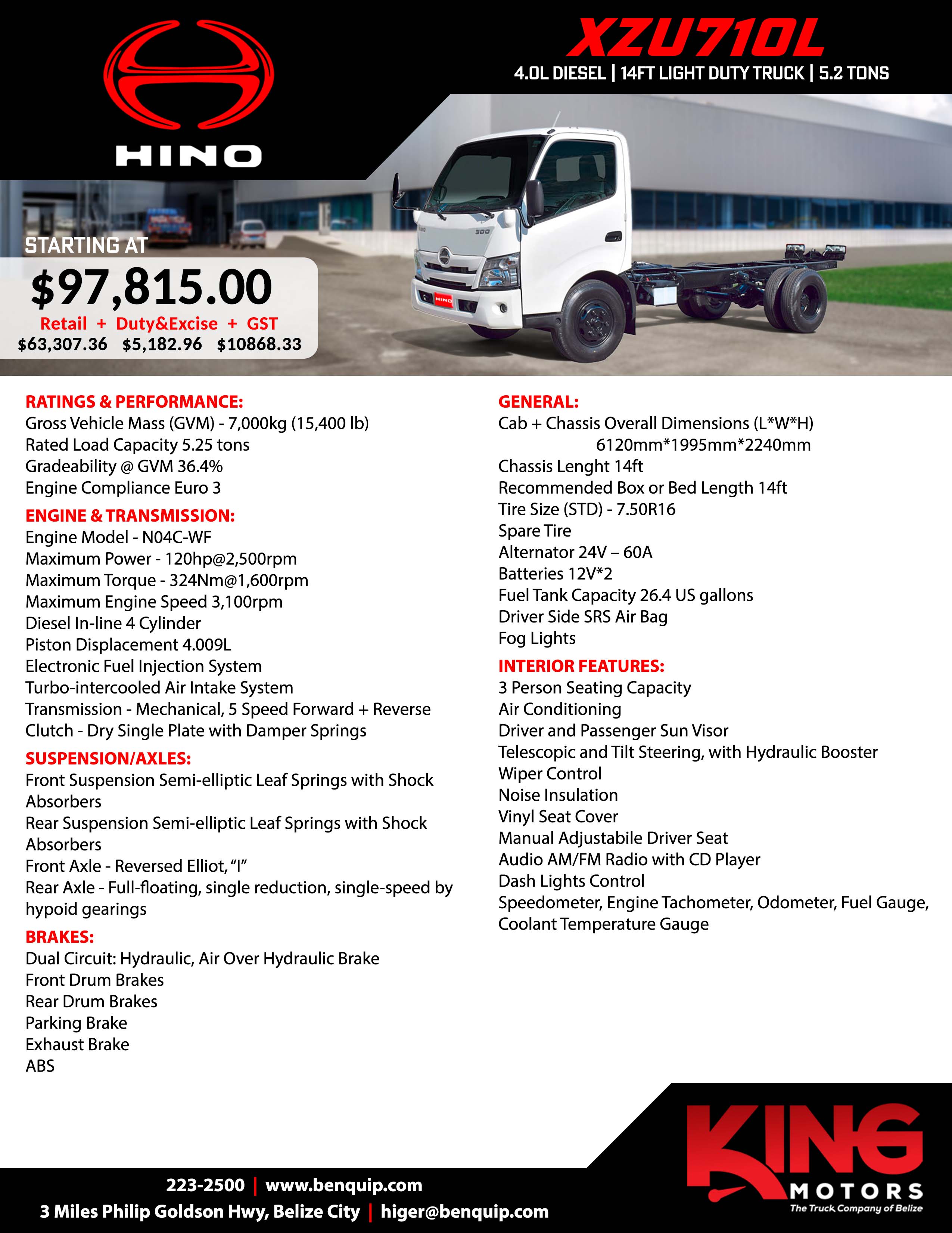 The HINO XZU710L is the perfect solution for businesses seeking a dependable light-duty truck that delivers both strength and efficiency. With its robust 4.0L diesel engine, 5.2-ton load capacity, and advanced safety features like ABS and exhaust braking, it’s built to handle demanding transport needs with confidence. Inside, drivers benefit from air conditioning, ergonomic seating, and modern conveniences that make every journey more comfortable. Stylish, durable, and engineered for performance, the XZU710L is a smart investment to keep your operations running smoothly and profitably.